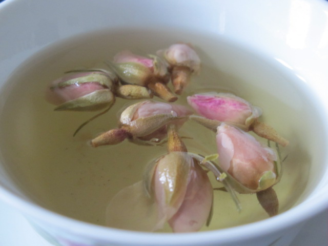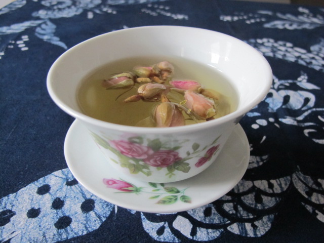 In China stehen Rosenblüten zur therapeutischen Anwendung hoch im Kurs. Schon seit alters ist man sich ihrer vielfältigen Heilkräfte bewusst. In den Schriften der traditionellen chinesischen Medizin heißt es, Rosenblüten würden das Qi regulieren und Schmerzen verursachende Stagnationen auflösen. Inzwischen weiß man, dass die in den Rosen enthaltenen ätherischen Öle und Gerbstoffe tatsächlich eine adstringierende, antivirale, entzündungshemmende und entkrampfende Wirkung haben. So wird Rosentee zur Stärkung von Herz und Kreislauf, bei Erkältungskrankheiten, vor allem aber bei Verdauungsstörungen empfohlen, weil er regulierend auf den Magendarmtrakt wirkt und deshalb sowohl bei Durchfall als auch bei Verstopfung getrunken werden kann.